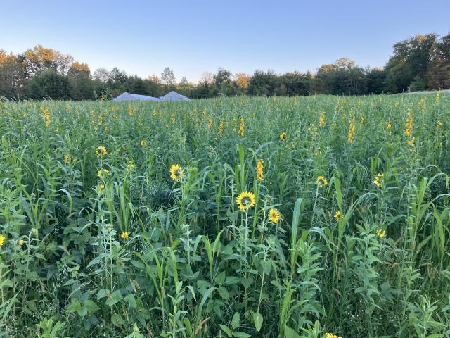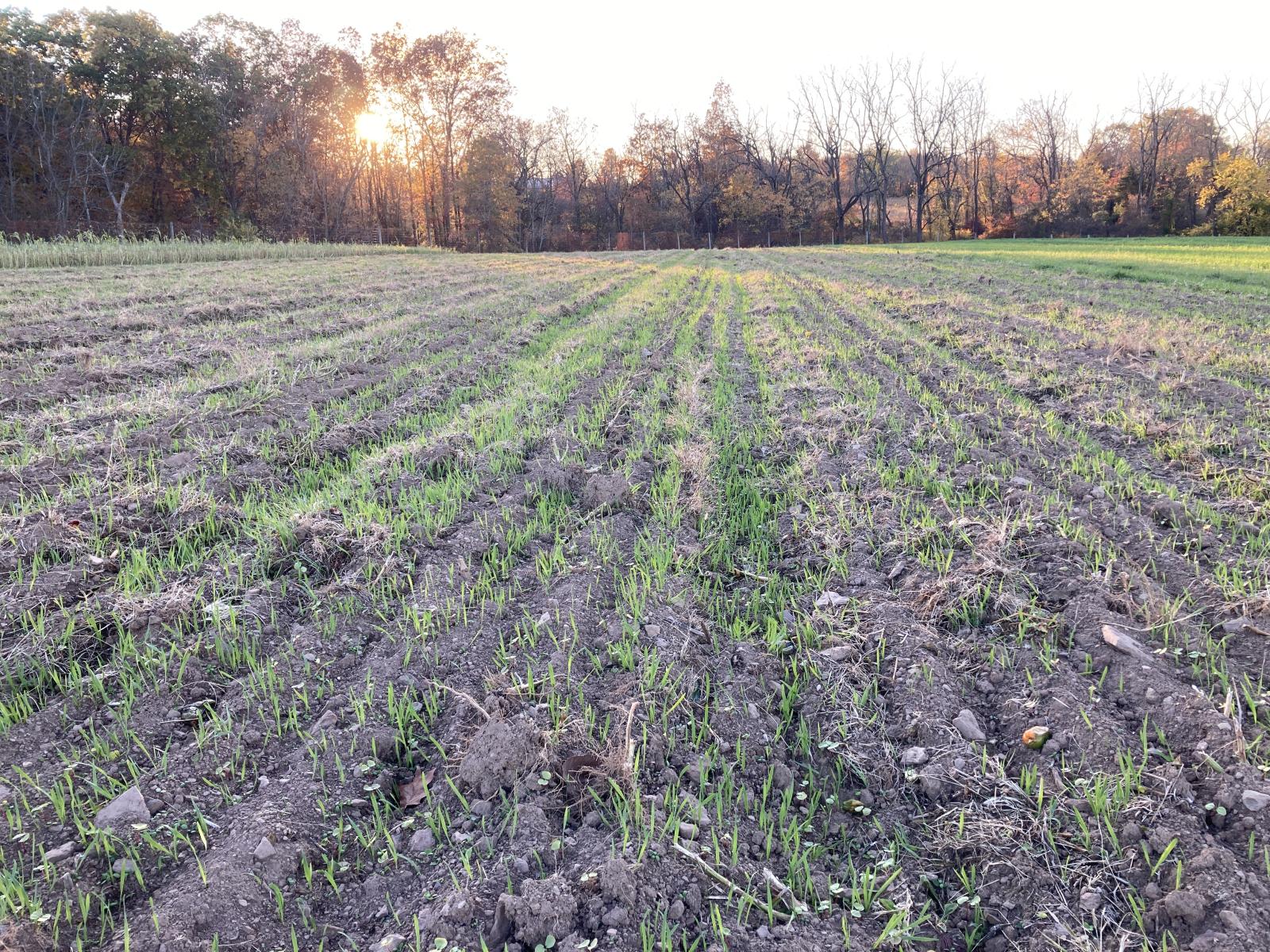 Where garlic grew a few months ago, a thriving cover crop now calls home.