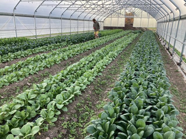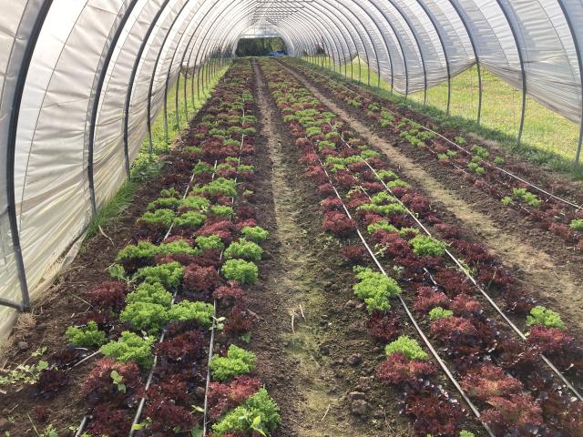 Lettuce mix maturing in one of the caterpillar tunnels.