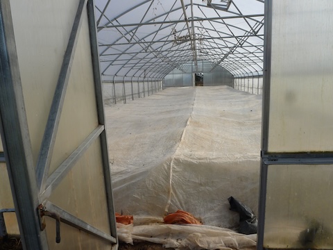 Elevated row cover is still effective inside our large tunnels. Temperatures under the interior cover can be 10-15 degrees warmer than outside at night.